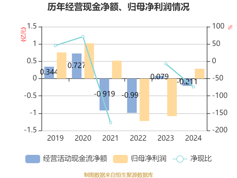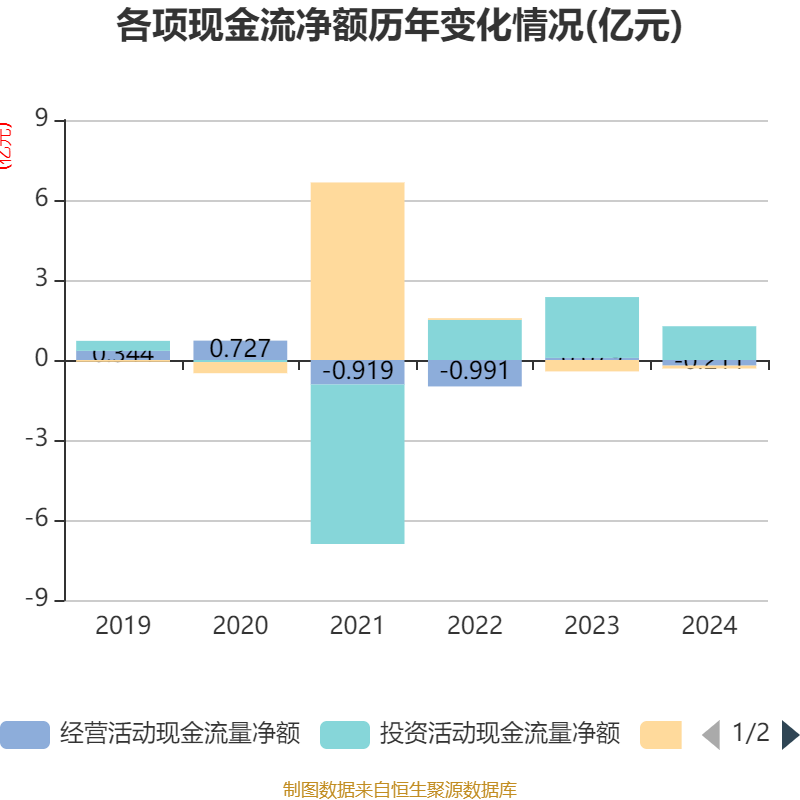截至2024年,公司经营活动现金流净额为-2111.88万元,同比减少2899.31万元;筹资活动现金流净额-1078.17万元,同比增加3193.53万元;投资活动现金流净额1.27亿元,上年同期为2.28亿元。