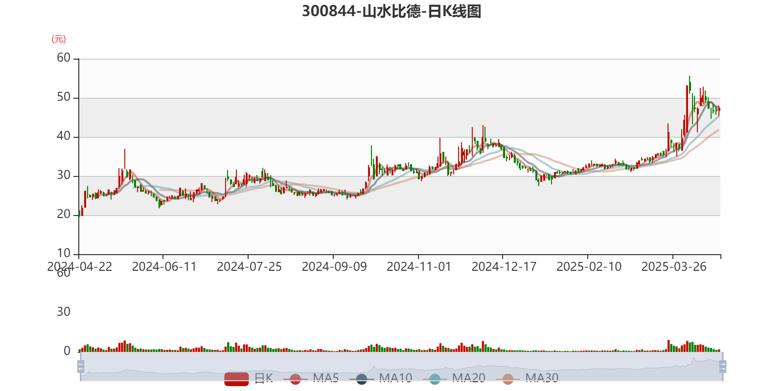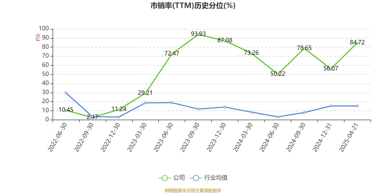 以4月21日收盘价计算,山水比德目前市盈率(TTM)约为106.75倍,市净率(LF)约3.97倍,市销率(TTM)约6.65倍。