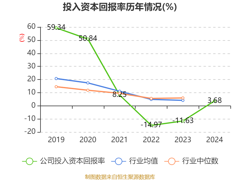 数据显示,2024年公司加权平均净资产收益率为3.8%,较上年同期上升17.46个百分点。公司2024年投入资本回报率为3.68%,较上年同期上升15.31个百分点。