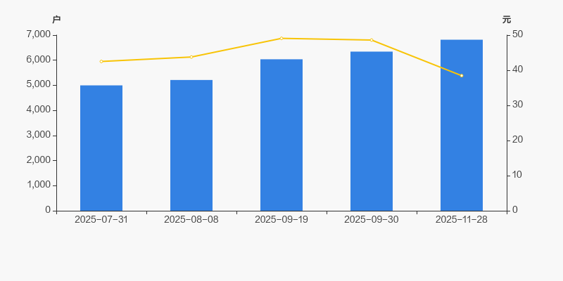2025年7月31日至今,公司股东户数显著增长,区间涨幅为36.42%。2025年7月31日至2025年11月28日区间股价下降9.51%。