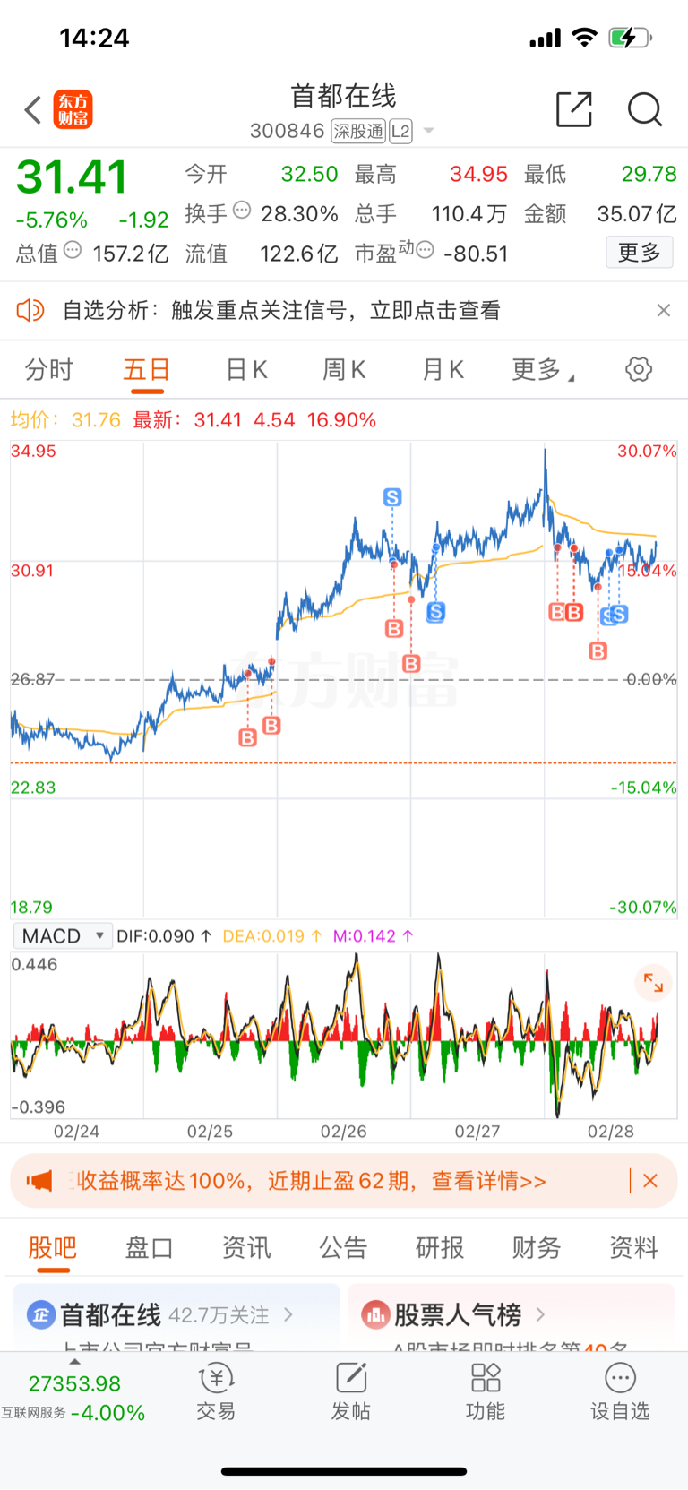 $首都在线(SZ300846)$ 还剩100手,做T做的太烂