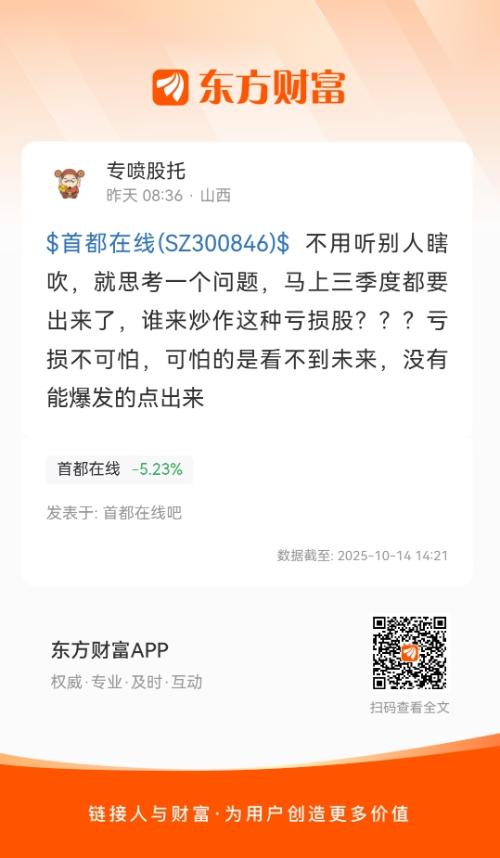 $首都在线(SZ300846)$ 不用听别人瞎吹,就思考一个问题,马上三季度都要出来了,谁来炒作这种亏损股???亏损不可怕,可怕的是看不到未来,没有能爆发的点出来