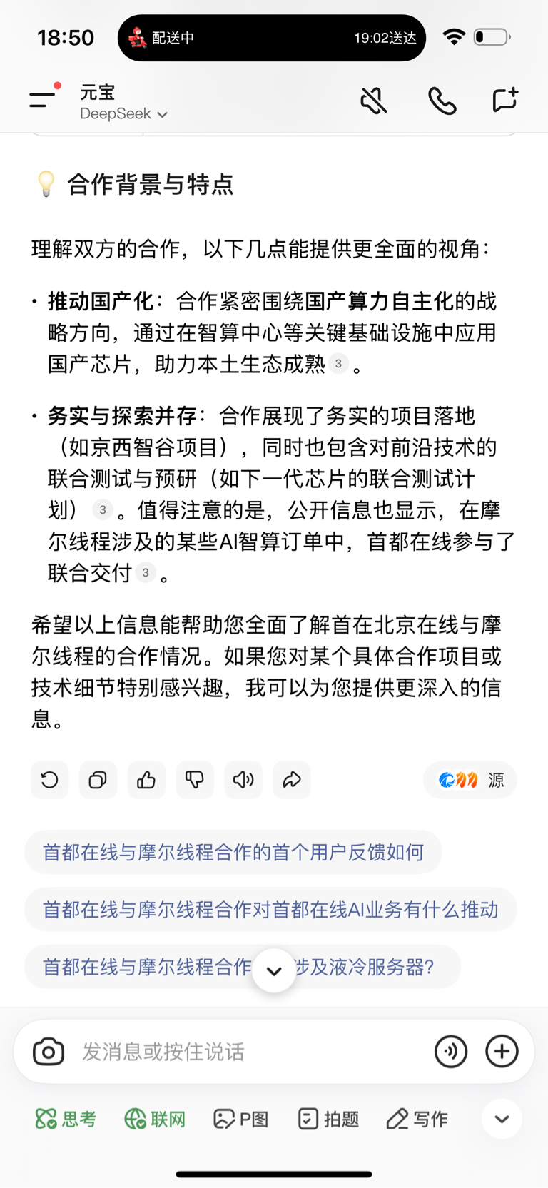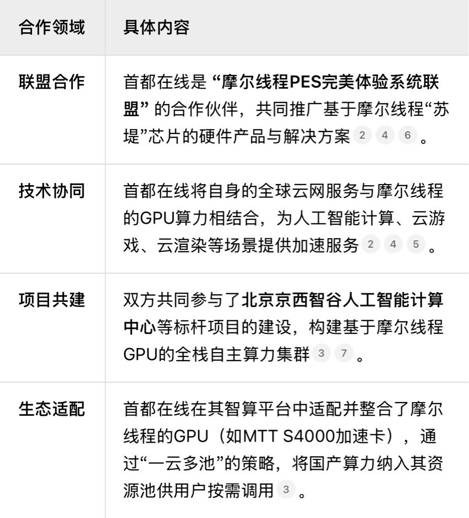 根据公开信息,首都在线与摩尔线程之间确实存在合作关系。双方的合作主要集中在云计算