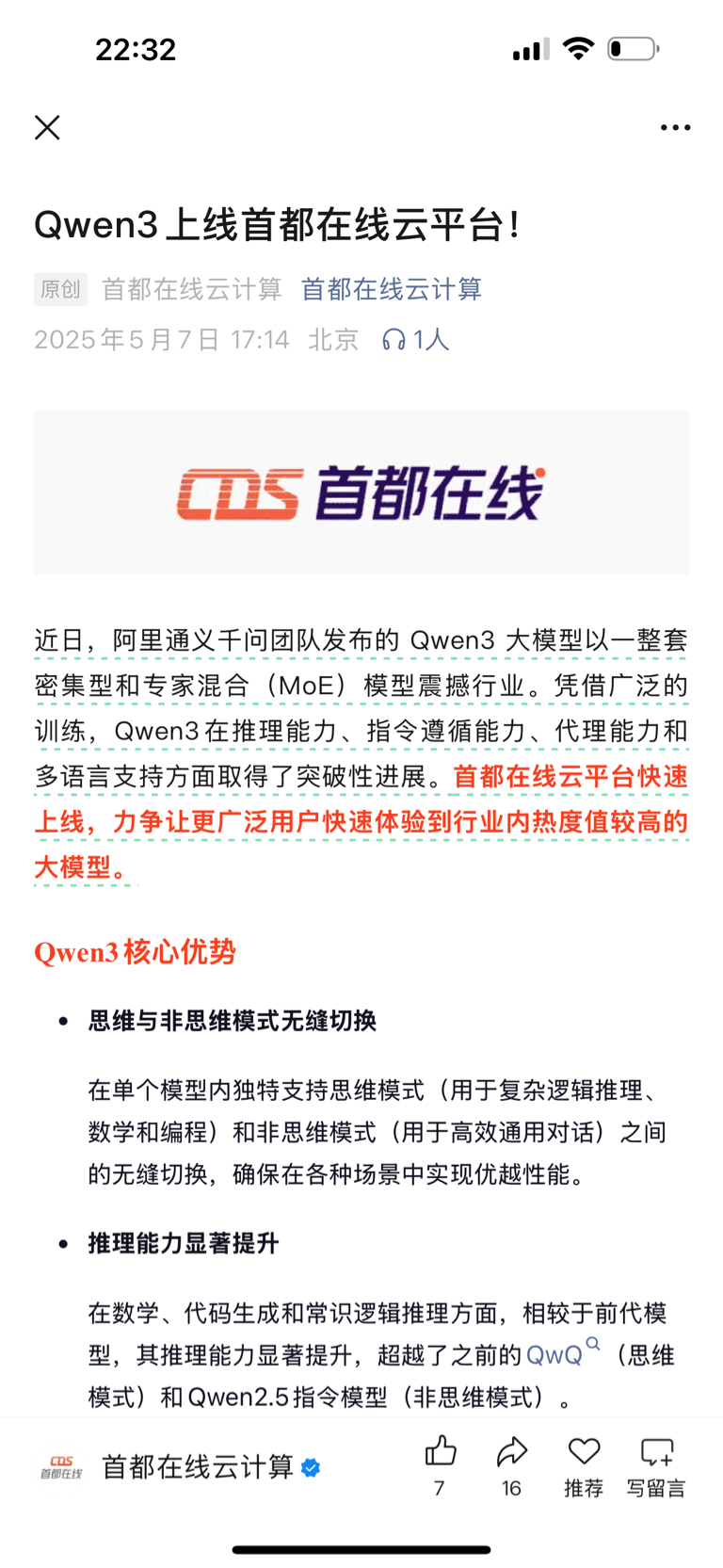 $首都在线(SZ300846)$ 阿里千问