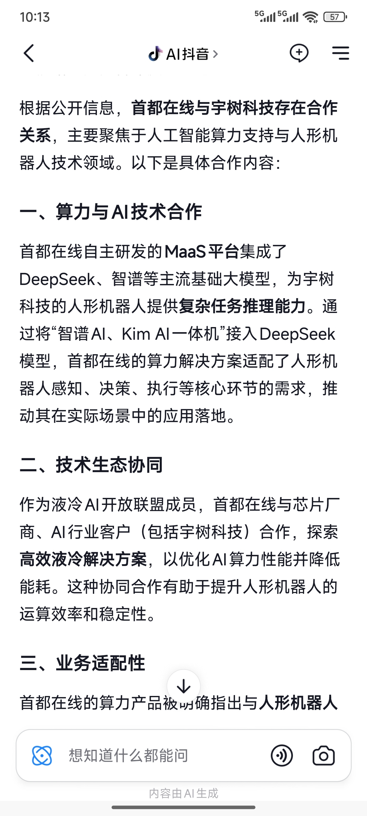 阿里,中国电信,宇树科技,华为,摩尔线程既然和首都在线都有合作……股价早晚拉升,