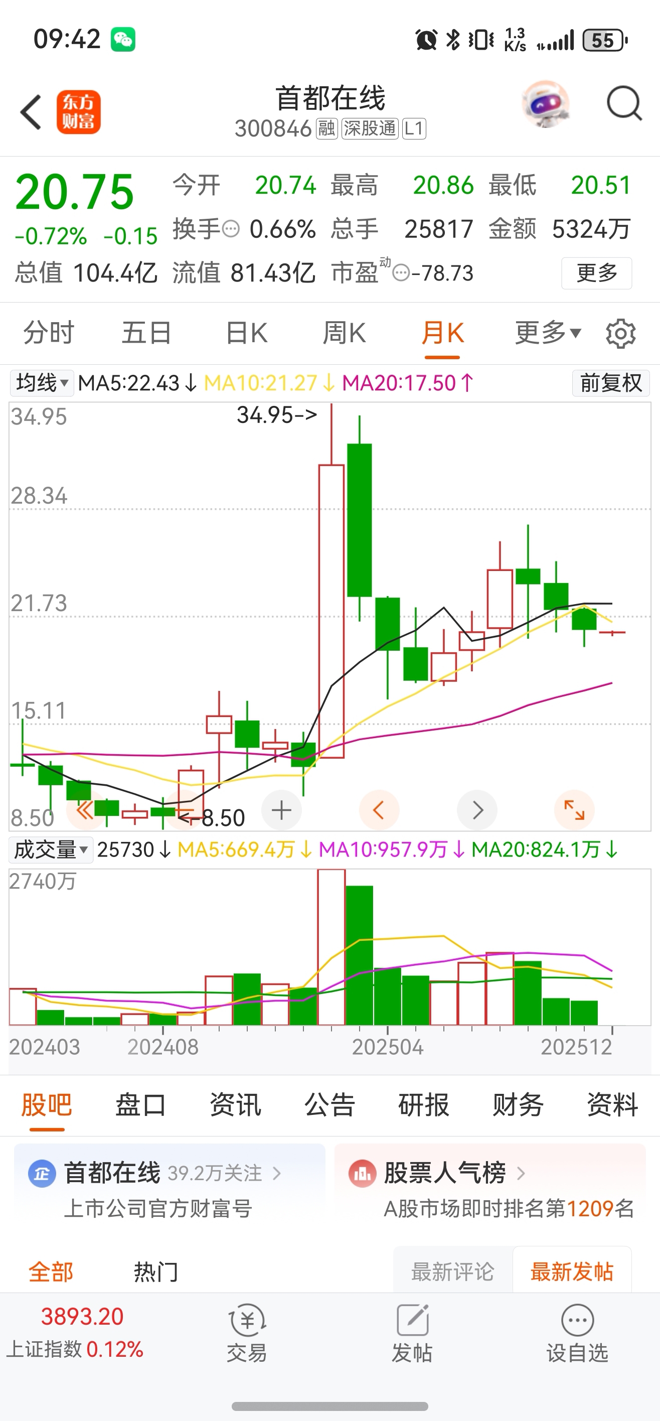 $首都在线(SZ300846)$ 月线跌了三个月,槽妮嘛