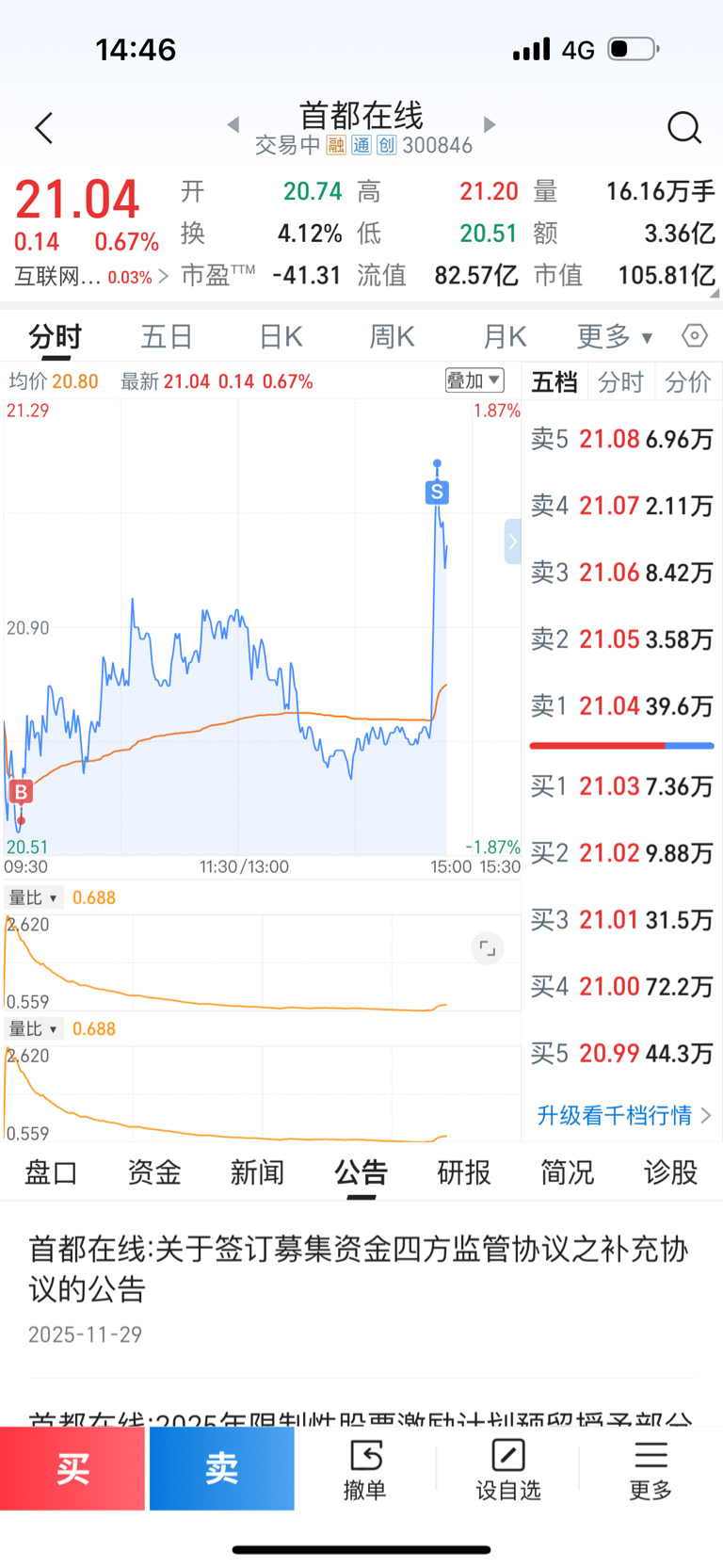 $首都在线(SZ300846)$ 没空看盘,挂单选手,我常常觉得自己强的可怕