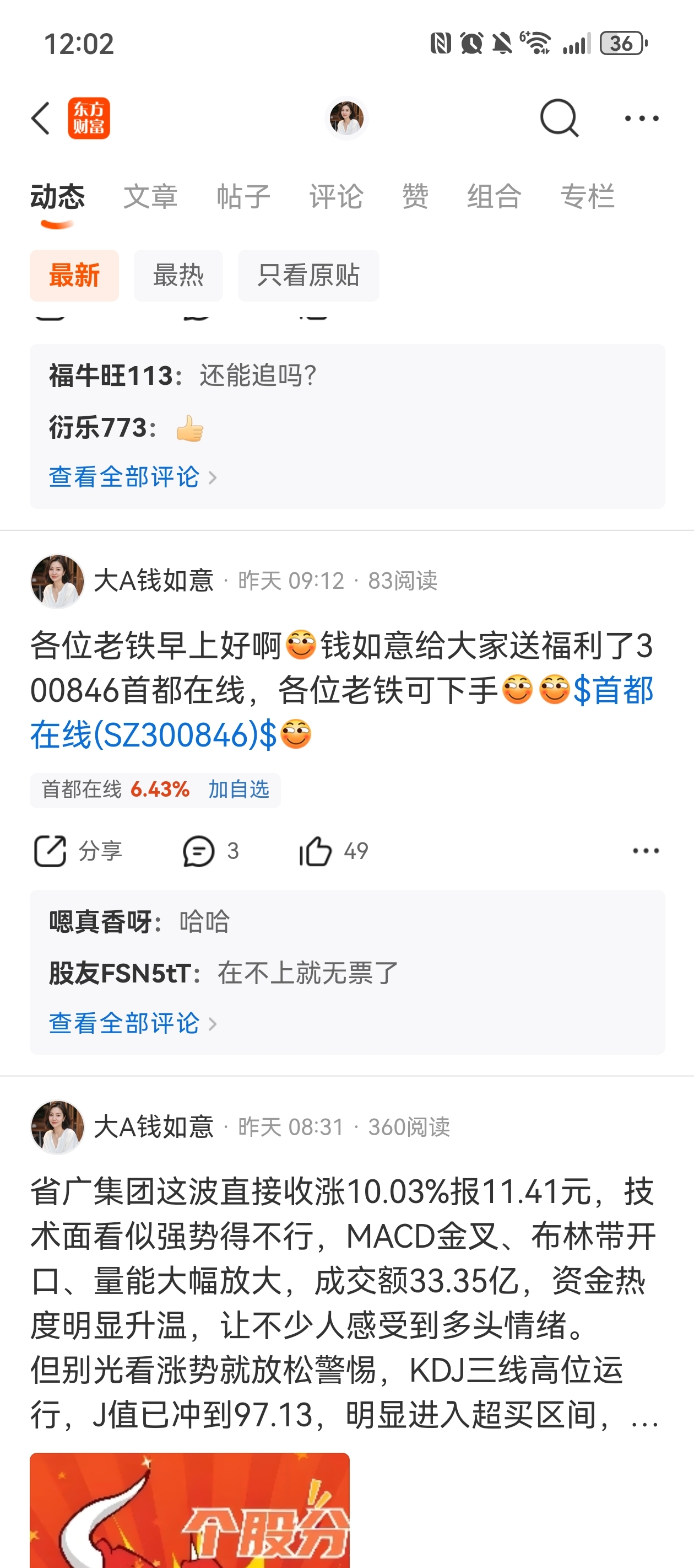 昨天如意姐姐给大家送的300846首都在线,各位接住了吗