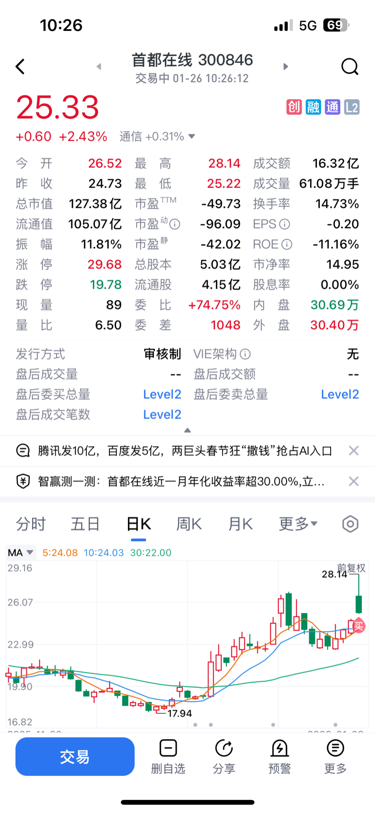 $首都在线(SZ300846)$ $泰胜风能(SZ300129)$ $金风科技(SZ002202)$ 今天看首都竞价强势,急匆匆出掉泰胜进首都,没想到抛压这么大,从一个坑进入了另一个坑,不过看分时和大单不太怕,坚定持有就行