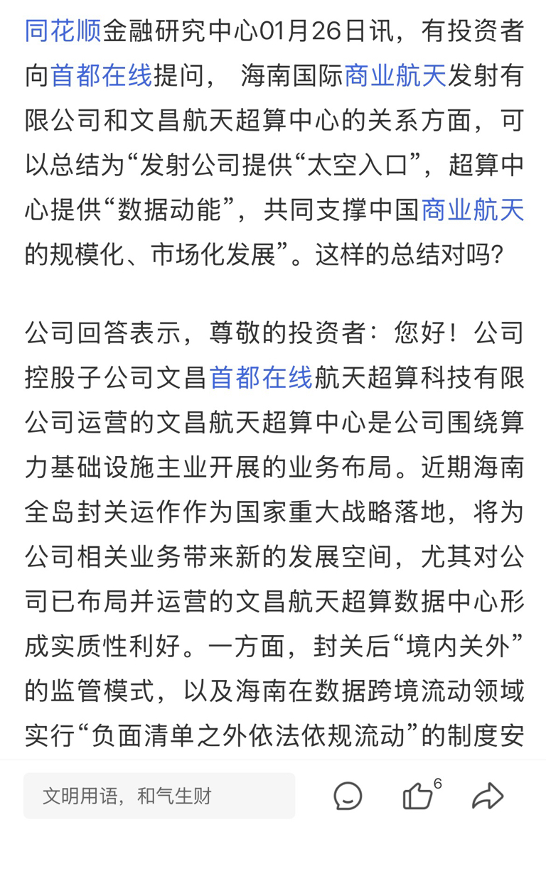 $首都在线(SZ300846)$ 航天算力这么硬的逻辑