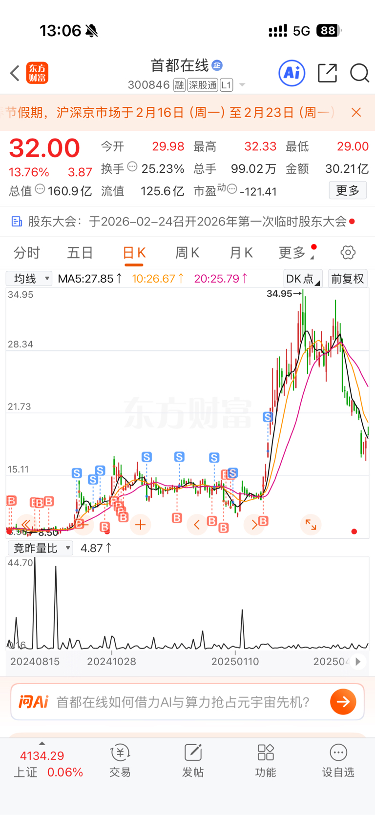 $首都在线(SZ300846)$ 哎!!!