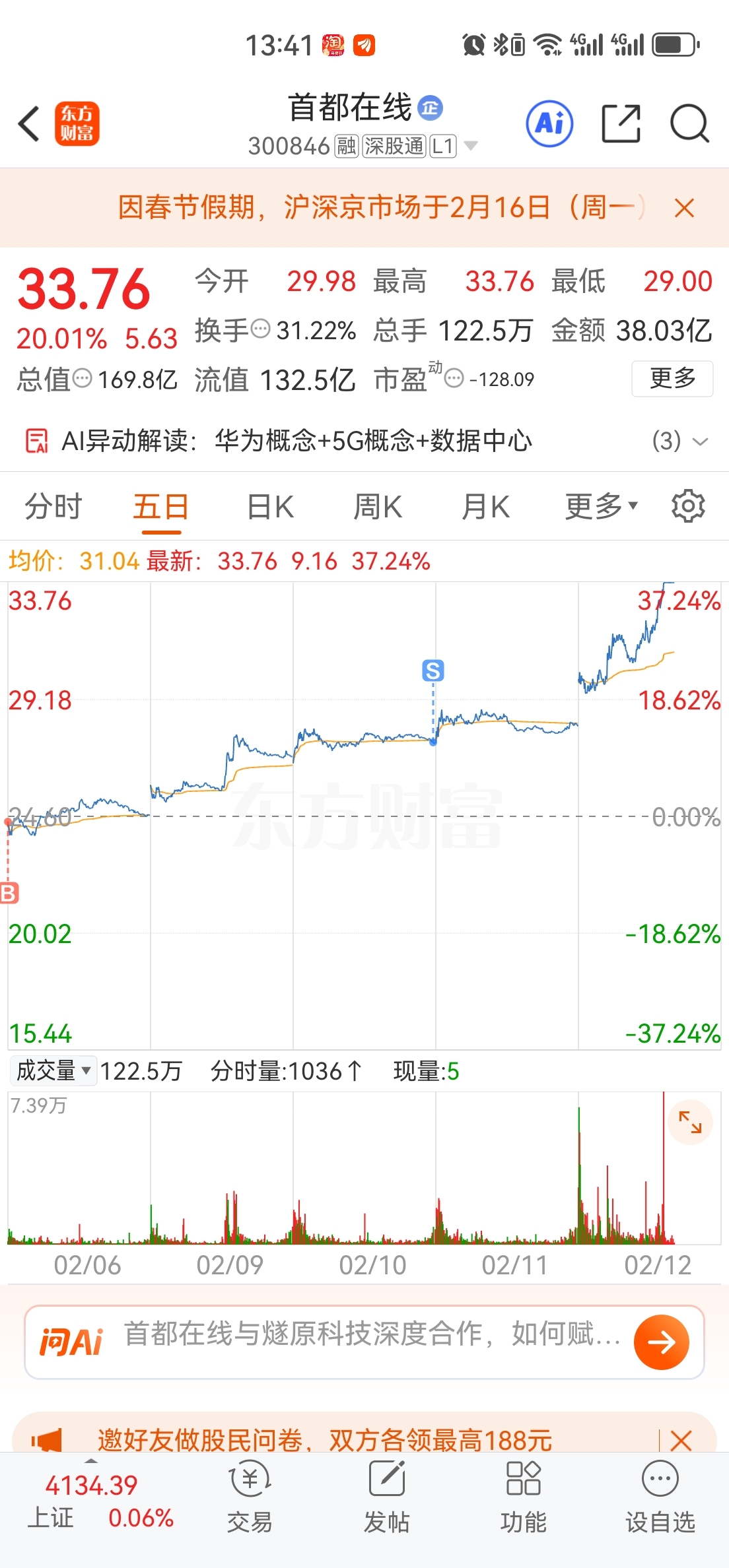 $首都在线(SZ300846)$ 卖飞了,塔玛德~甘
