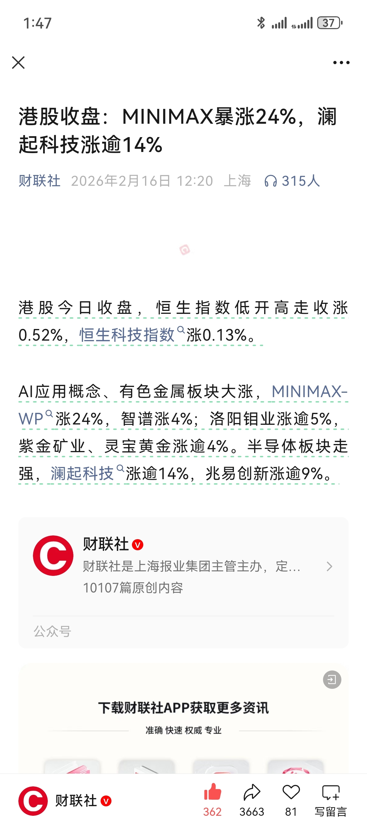 郑重声明:用户在财富号/股吧/博客等社区发表的所有信息(包括但不限于文字、视频、音频、数据及图表)仅代表个人观点,与本网站立场无关,不对您构成任何投资建议,据此操作风险自担。请勿相信代客理财、免费荐股和炒股培训等宣传内容,远离非法证券活动。请勿添加发言用户的手机号码、公众号、微博、微信及QQ等信息,谨防上当受骗!
