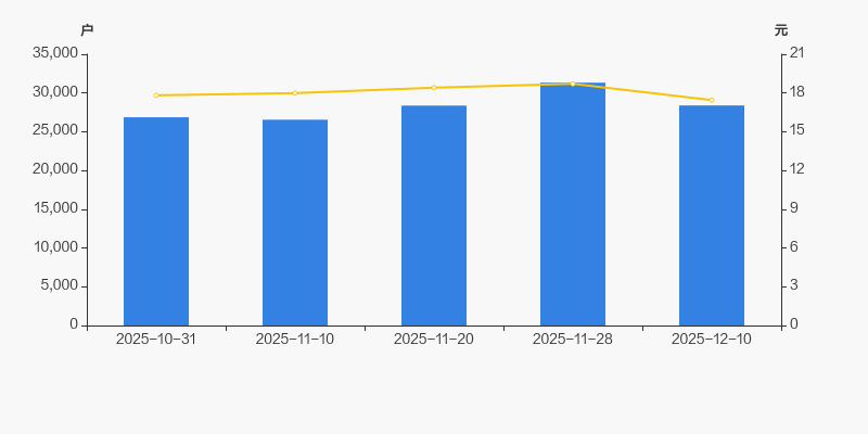 2025年10月31日至今,公司股东户数有所增长,区间涨幅为5.69%。2025年10月31日至2025年12月10日区间股价下降2.08%。