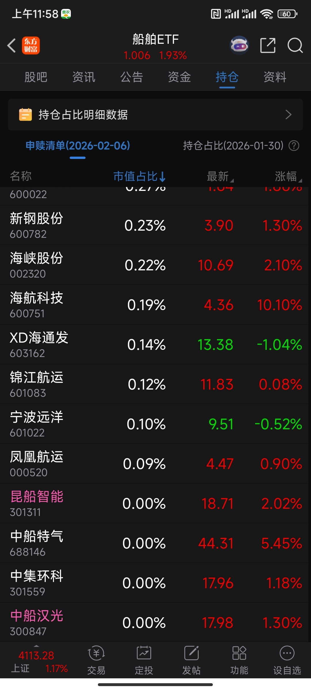 $中船汉光(SZ300847)$ 配置比例最低。