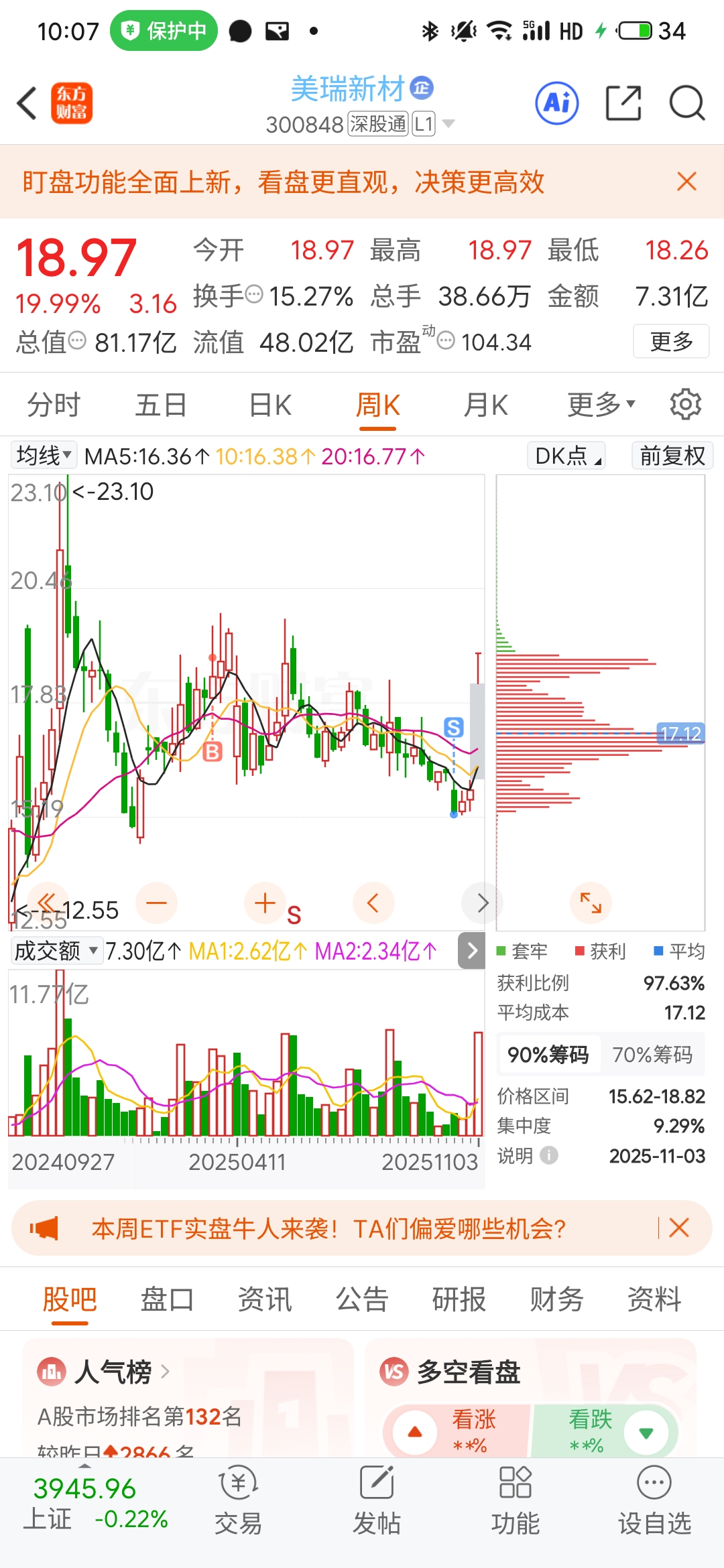 $美瑞新材(SZ300848)$ 真的佩服我自己