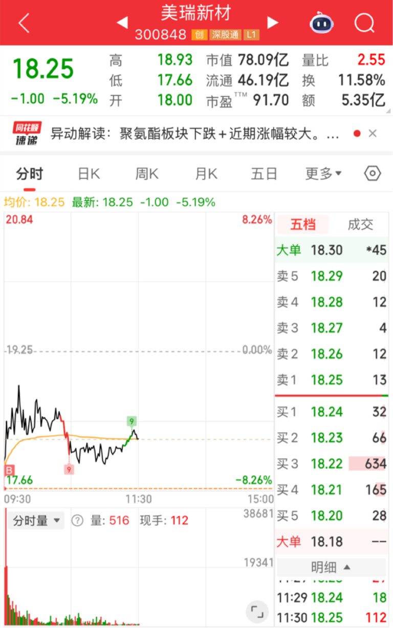 $美瑞新材(SZ300848)$ 目前算比较低,今天反正不能交易,看明天了