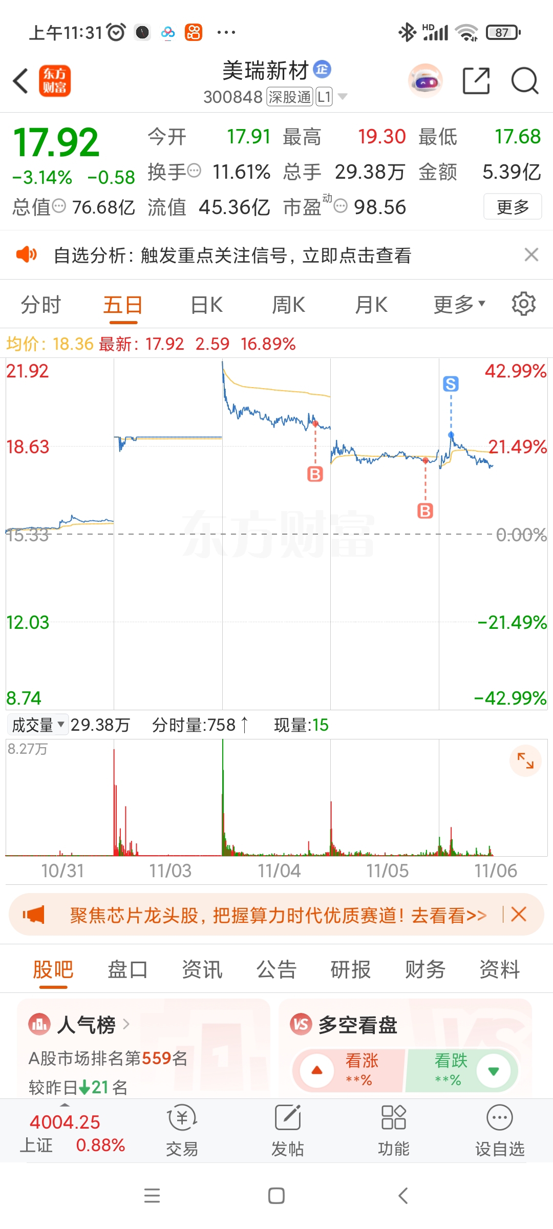 $美瑞新材(SZ300848)$ 哎呀,好险,微赚跑了。