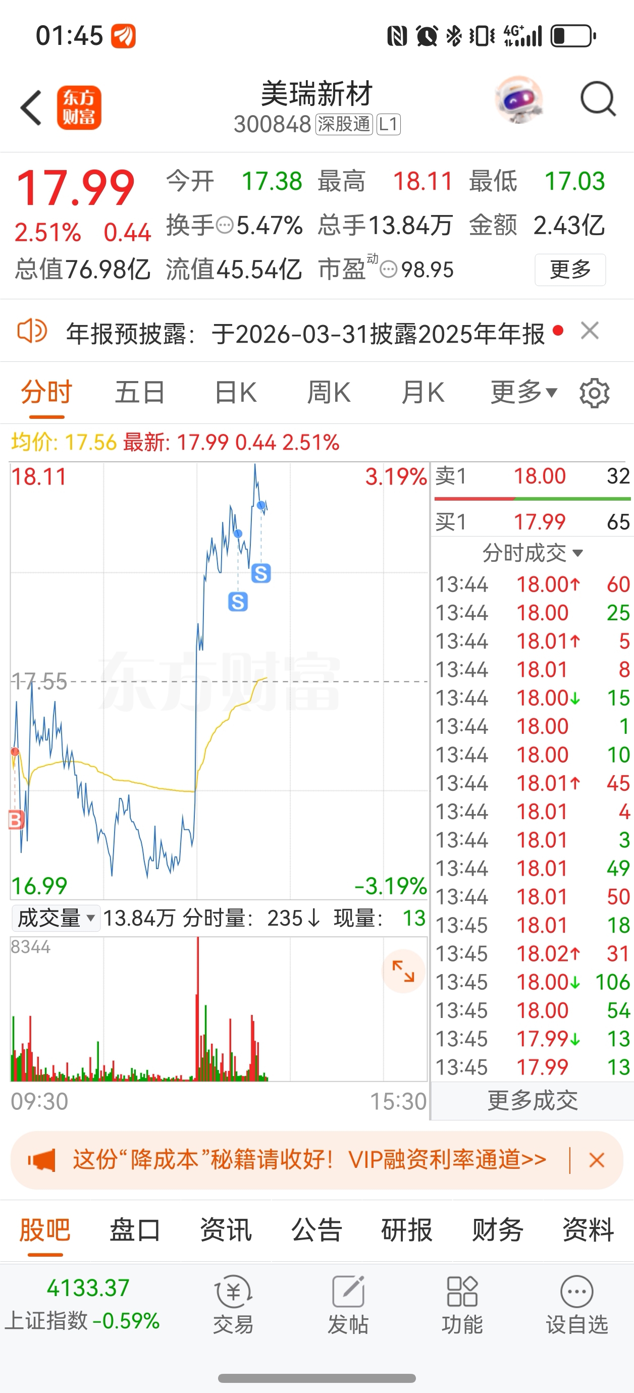 $美瑞新材(SZ300848)$ 先出止盈,下周在上,留了个点仓,这个不错的资金比较活跃,还能上