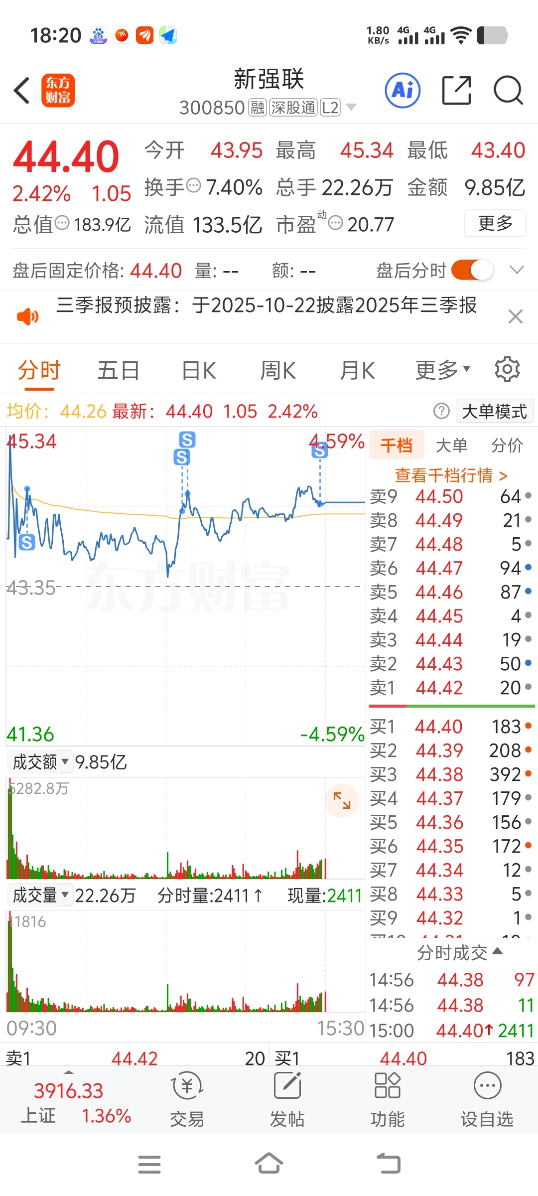 $新强联(SZ300850)$ 尾盘感觉不好就给清仓了