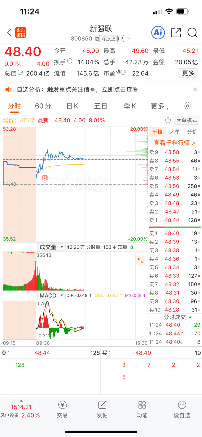 $新强联(SZ300850)$ 我的成本线是强支撑