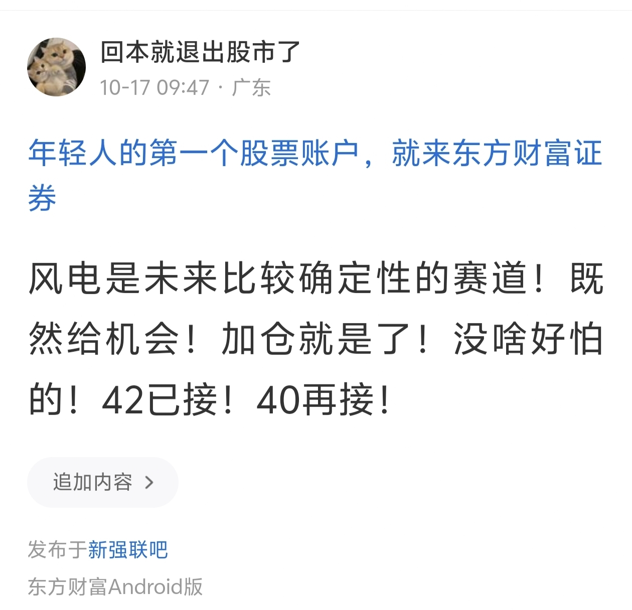 温馨提示: 1.根据《证券法》规定,禁止编造、传播虚假信息或者误导性信息,扰乱证券市场;2.用户在本社区发表的所有资料、言论等仅代表个人观点,与本网站立场无关,不对您构成任何投资建议。用户应基于自己的独立判断,自行决定证券投资并承担相应风险。《东方财富社区管理规定》