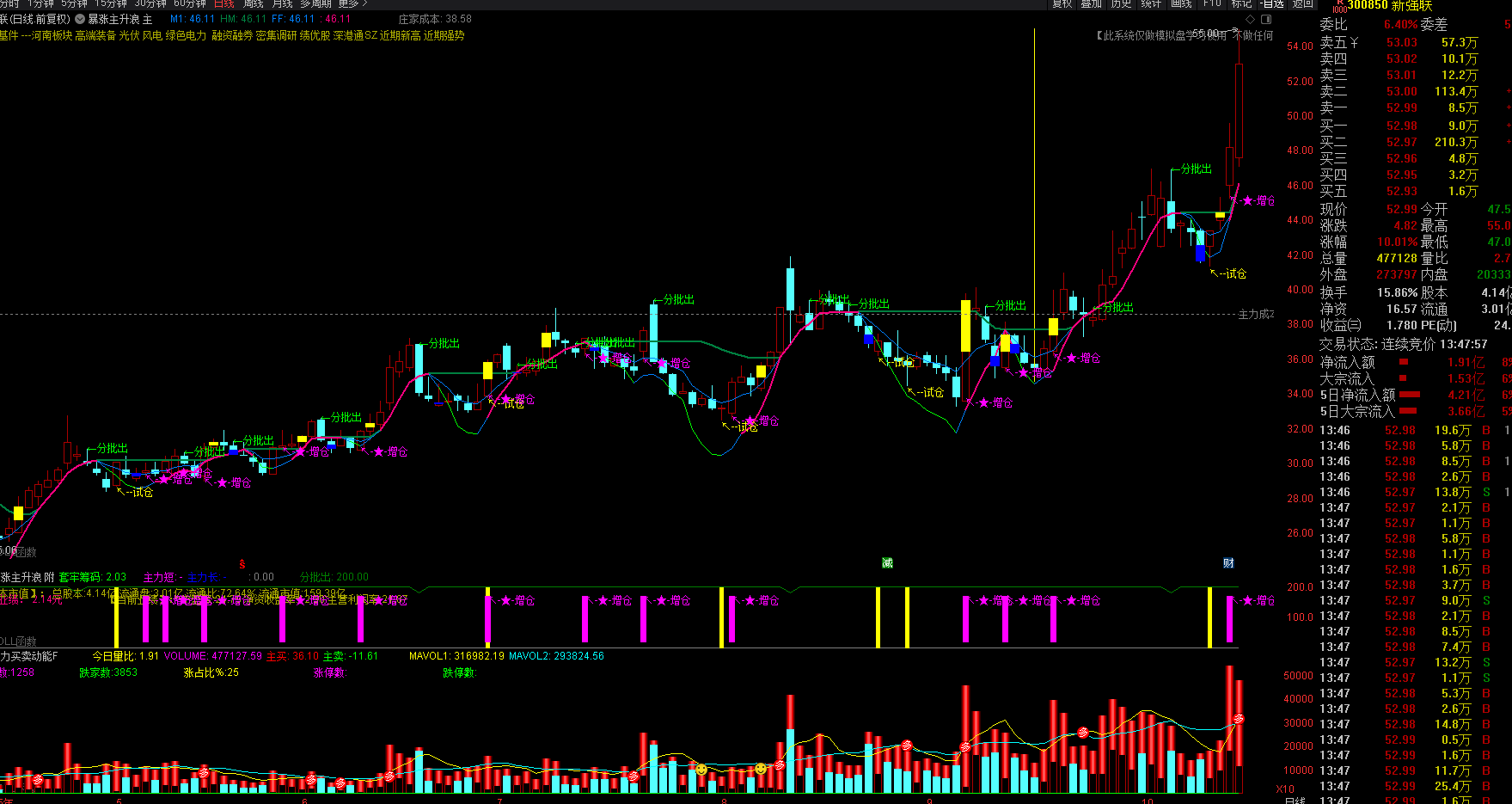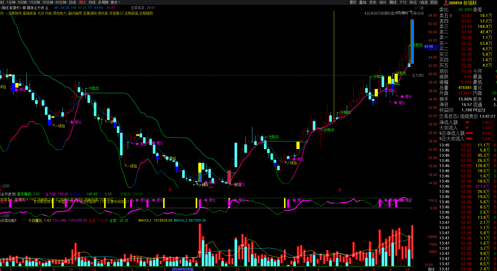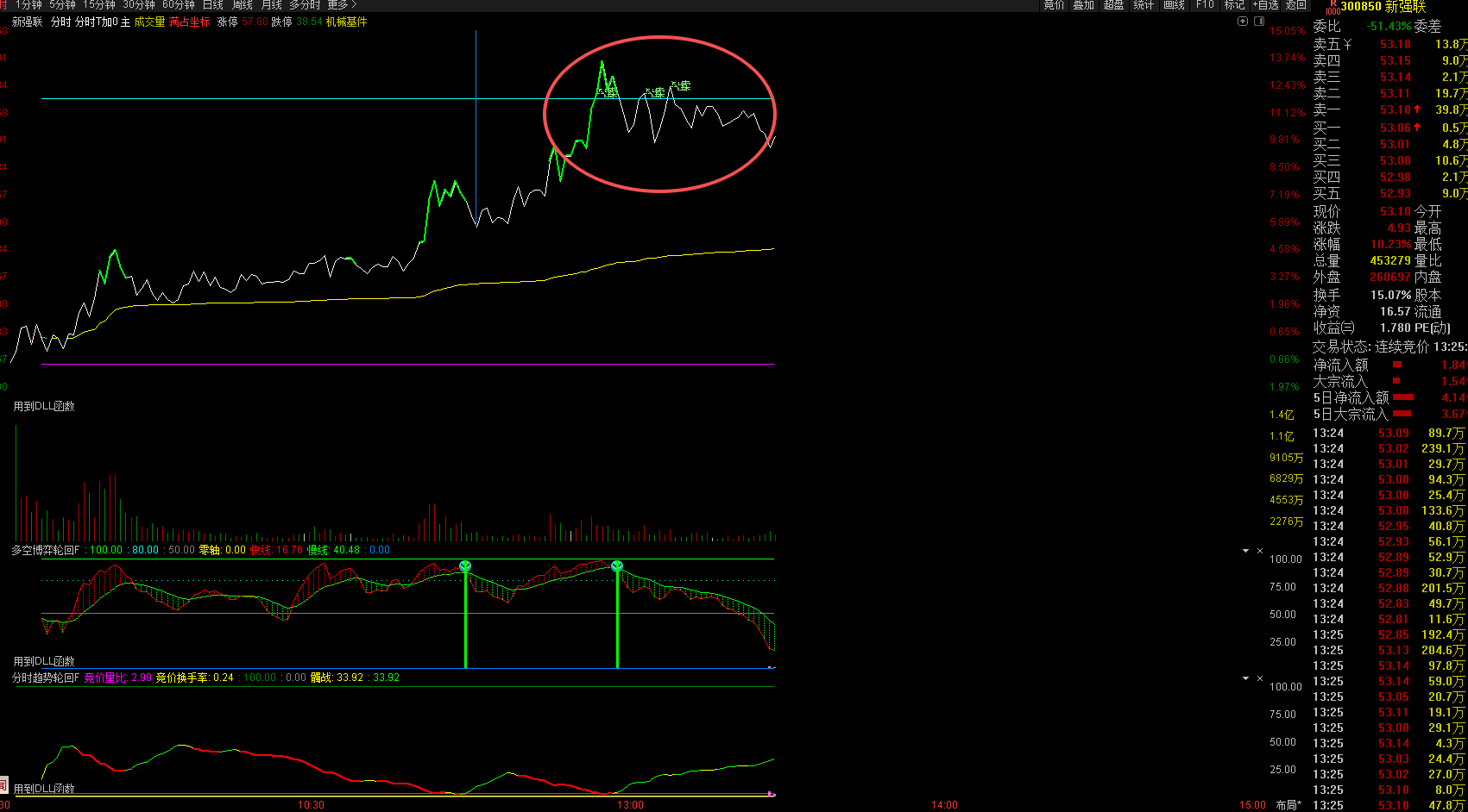 新强联周线卖出信号日线量能增加分时卖出信号