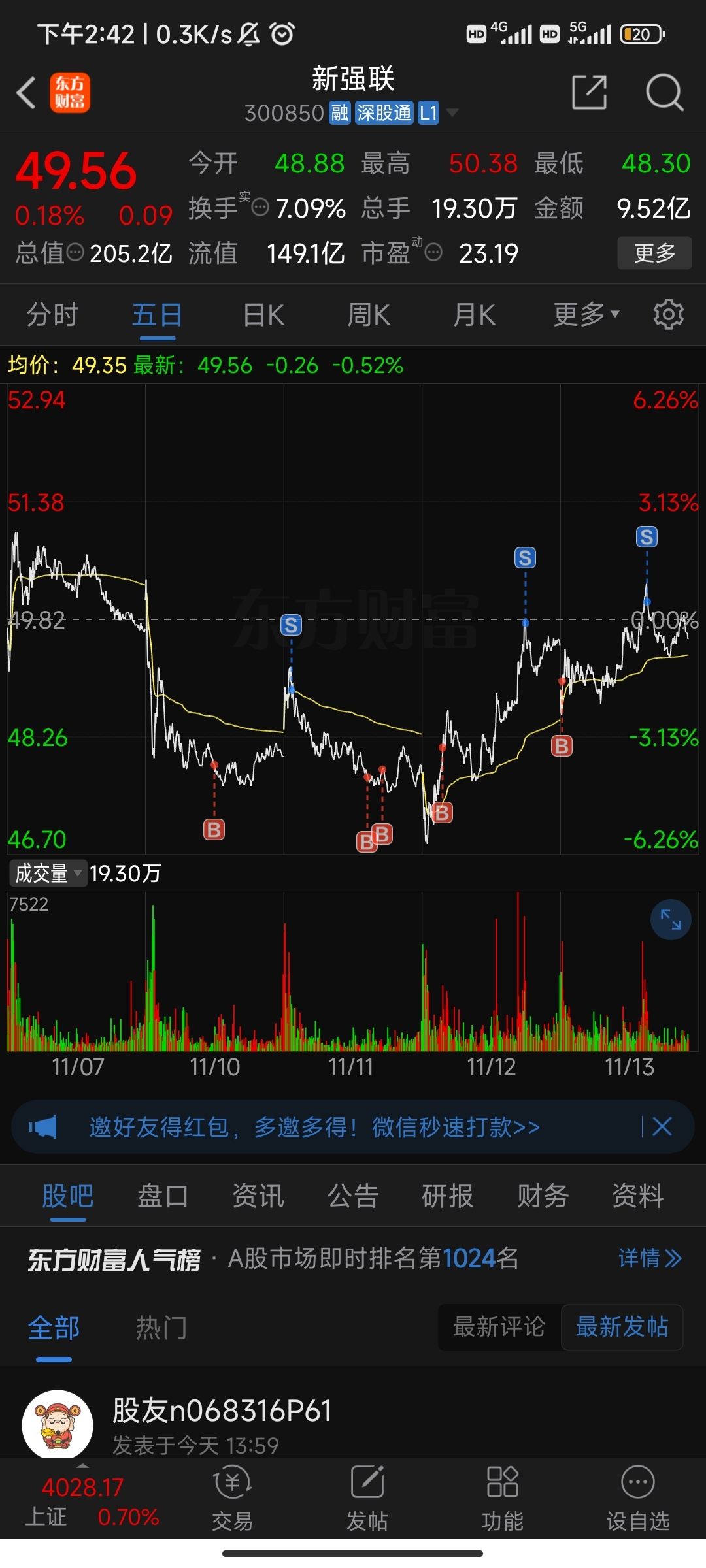 $新强联(SZ300850)$ 每日一小T,赚点零花钱