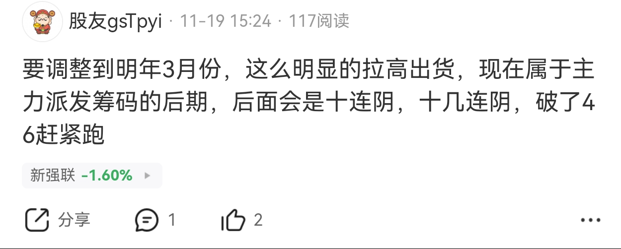 温馨提示: 1.根据《证券法》规定,禁止编造、传播虚假信息或者误导性信息,扰乱证券市场;2.用户在本社区发表的所有资料、言论等仅代表个人观点,与本网站立场无关,不对您构成任何投资建议。用户应基于自己的独立判断,自行决定证券投资并承担相应风险。《东方财富社区管理规定》