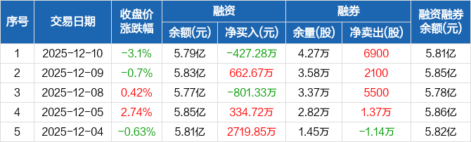 新强联:融资净偿还427.28万元,融资余额5.79亿元(12-10)