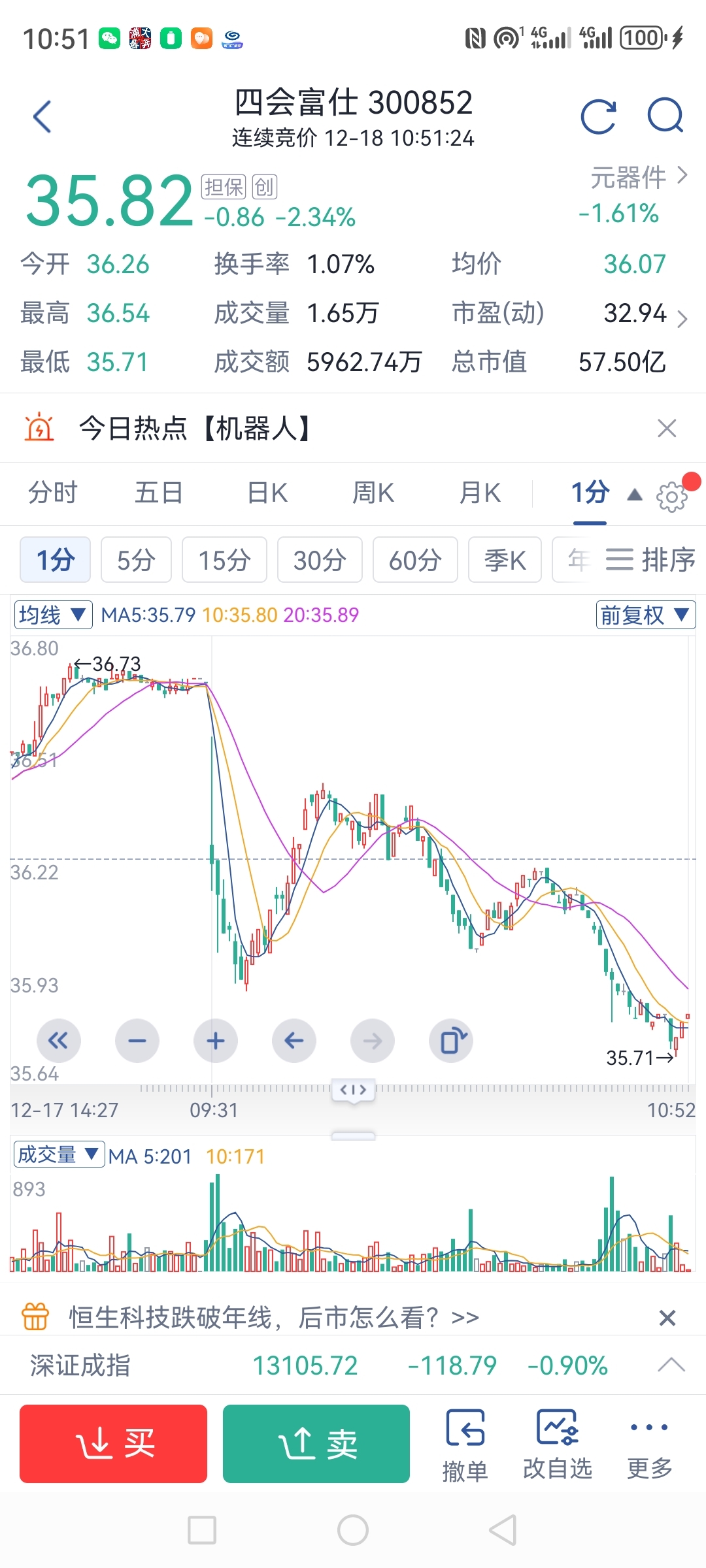 $四会富仕(SZ300852)$ 连创业板都不如