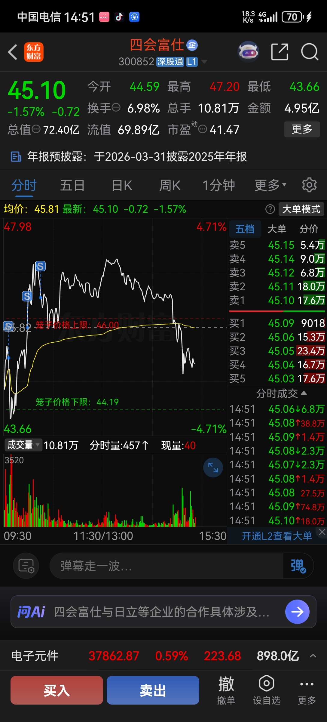 $四会富仕(SZ300852)$ 亏我一万多割了进了怡达股份又赚回来了