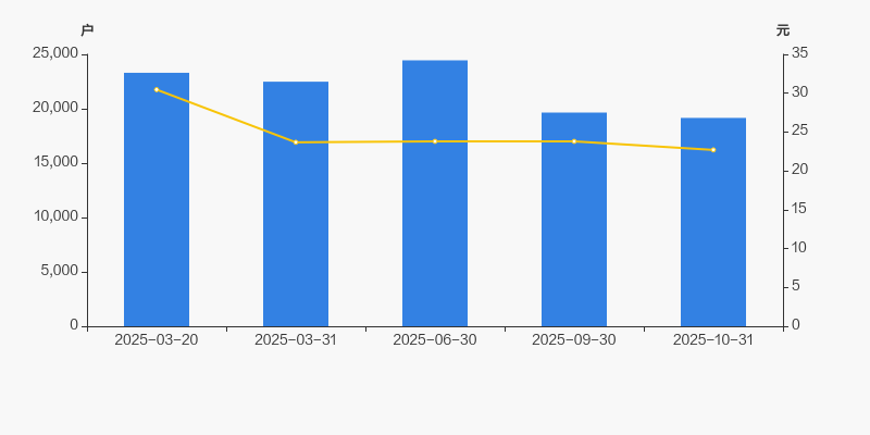 2025年3月20日至今,公司股东户数显著下降,区间跌幅为17.80%。2025年3月20日至2025年10月31日区间股价下降25.48%。