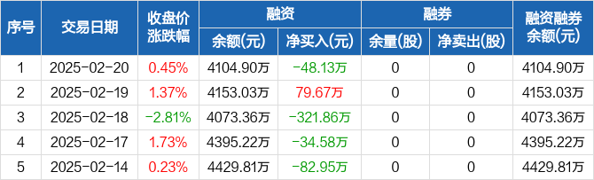 中兰环保:融资净偿还48.13万元,融资余额4104.9万元(02-20)