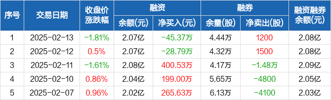 图南股份:融资净偿还45.37万元,融资余额2.07亿元(02-13)