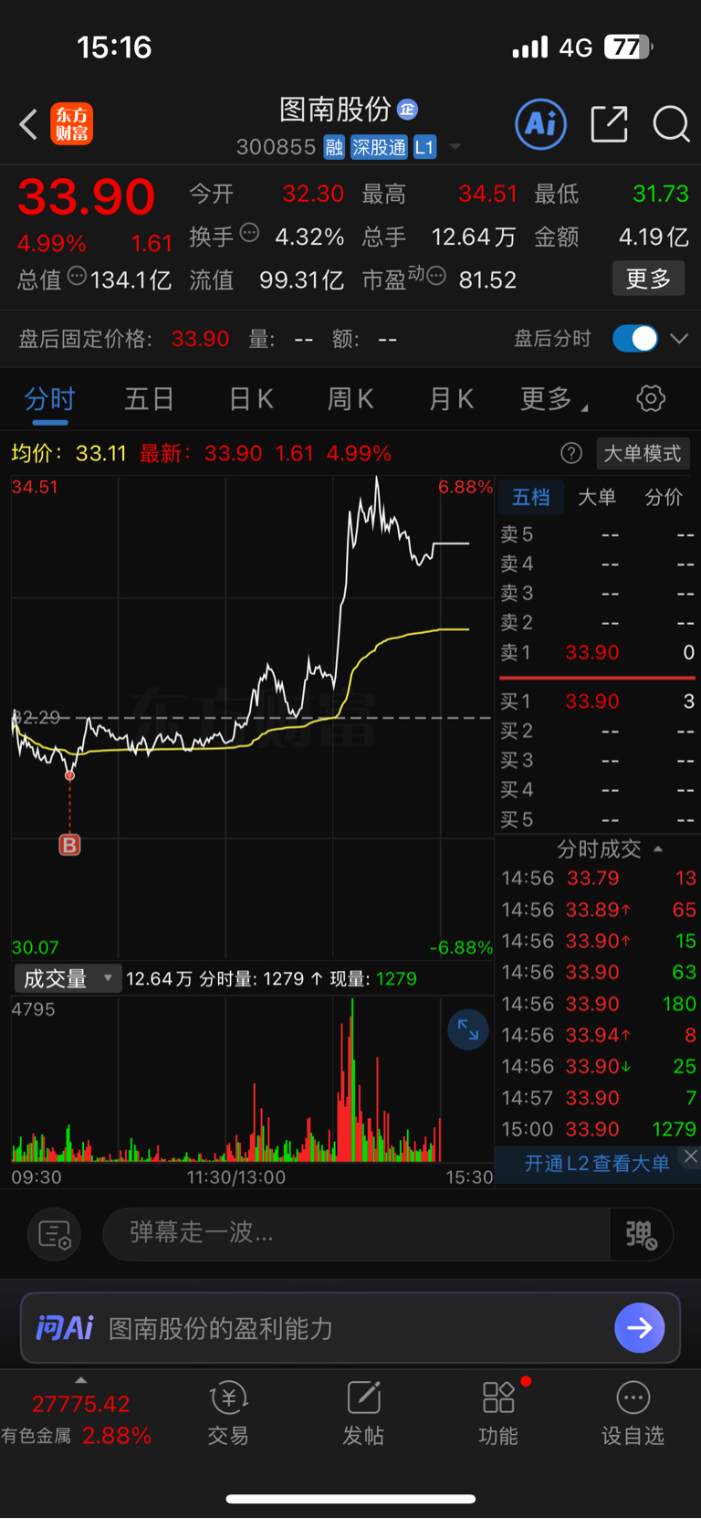 $图南股份(SZ300855)$ 等了几天,终于等到买点了