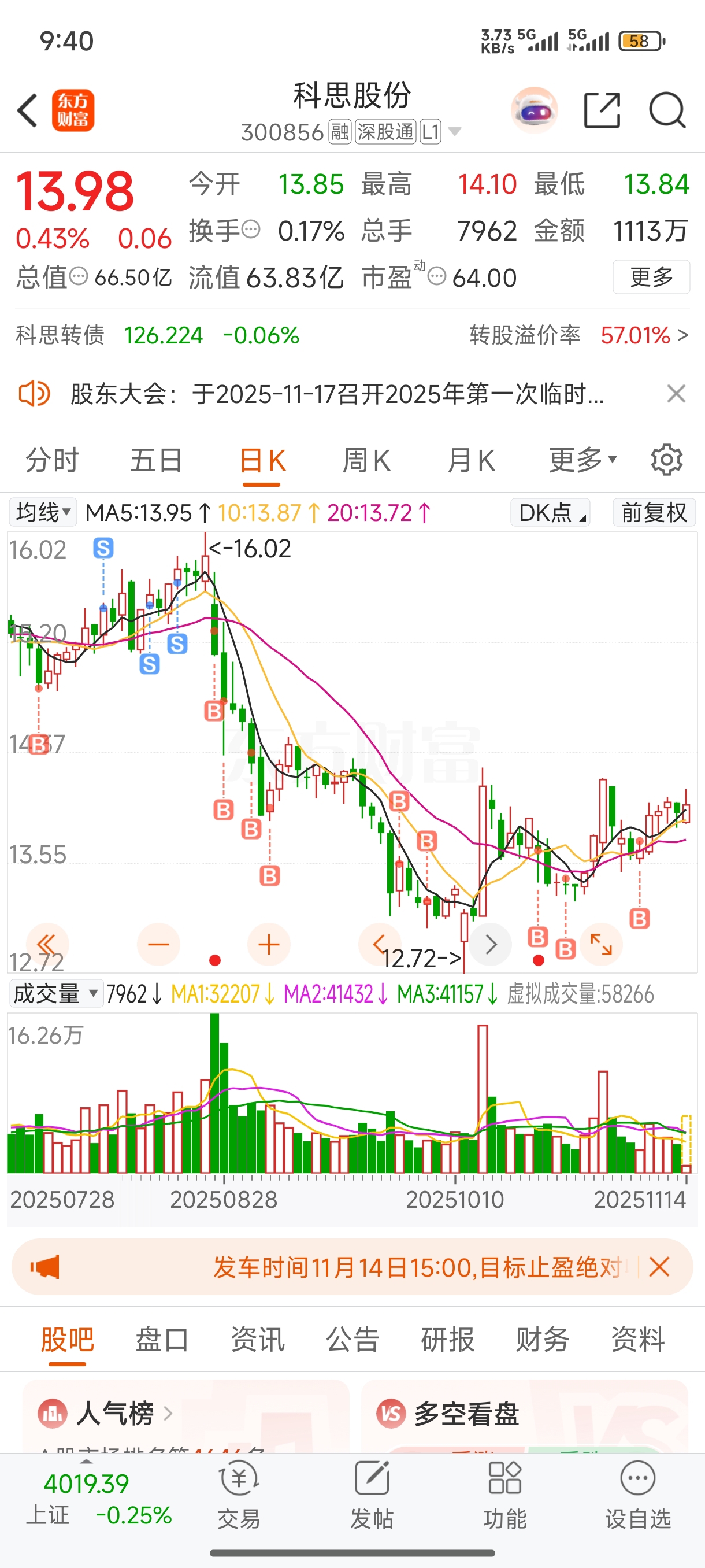 $科思股份(SZ300856)$ 快走出底部了