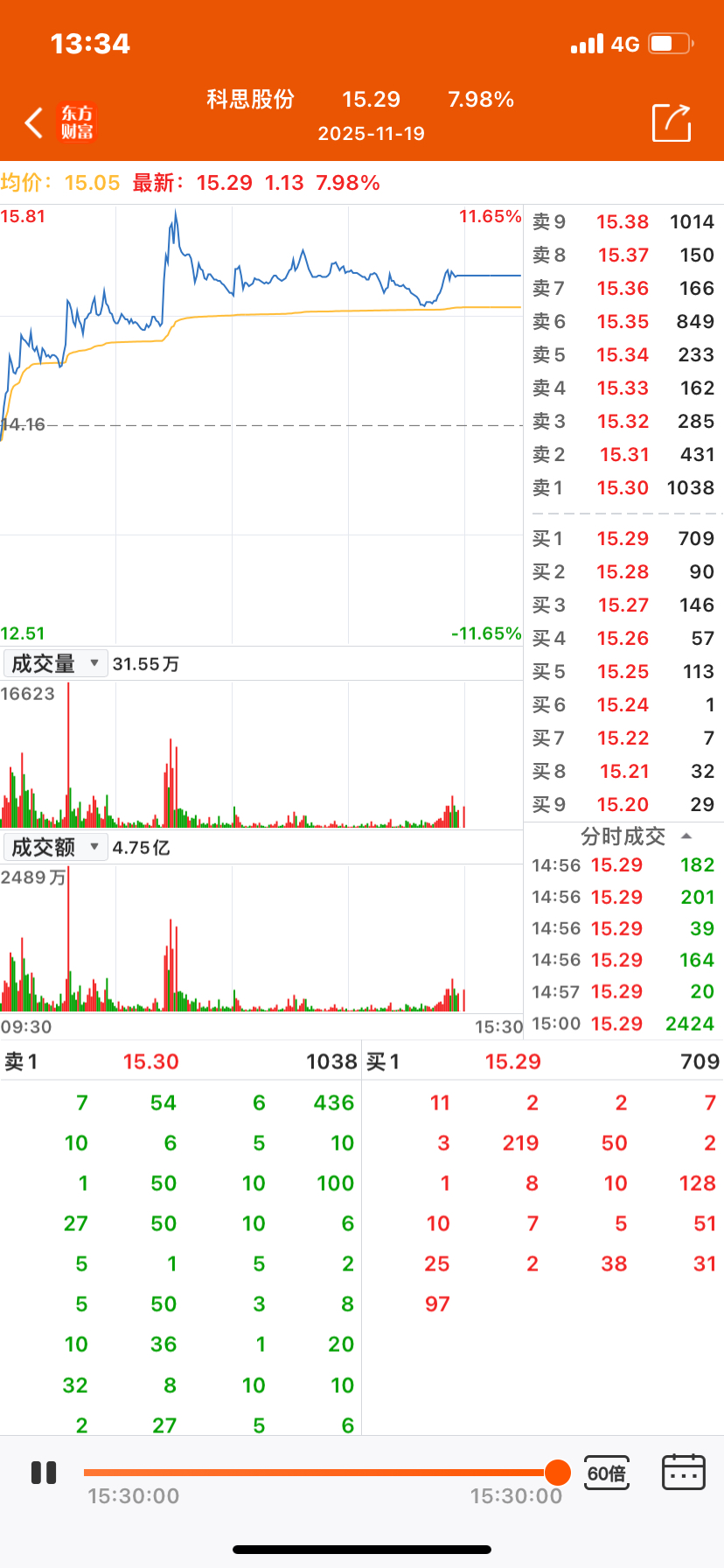 $科思股份(SZ300856)$ 今天这走势不就是11.19复刻?明天等着跌吧。