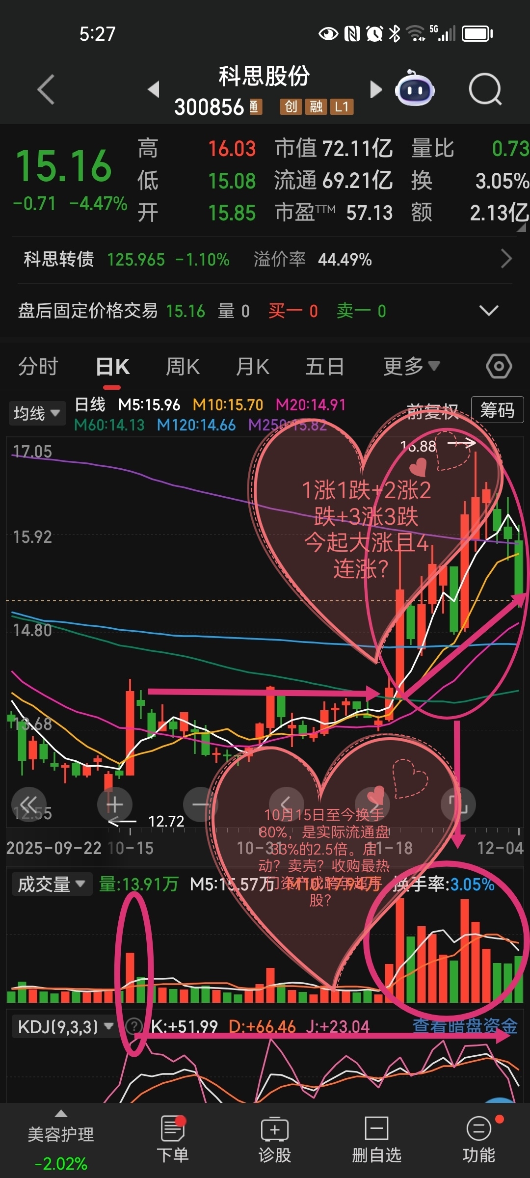科思要搞大事吗?K线如此规律。1涨1跌+2涨2跌+3涨3跌,今起整大事?大涨接4