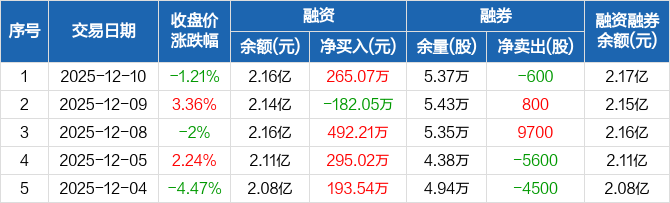 科思股份:融资净买入265.07万元,融资余额2.16亿元(12-10)