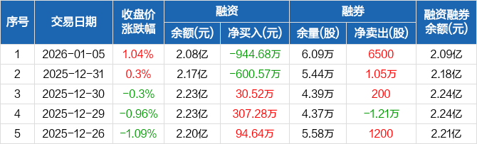 科思股份:融资净偿还944.68万元,融资余额2.08亿元(01-05)