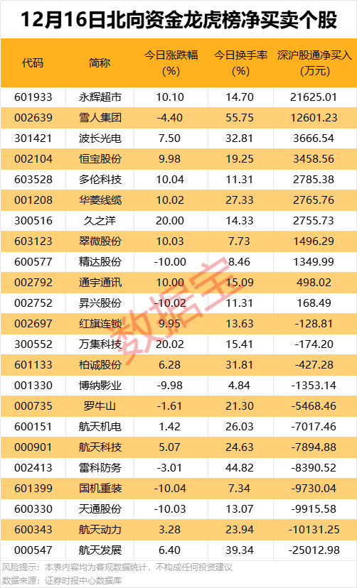 北向资金净卖出12股,航天发展净卖出金额居首,为2.5亿元;航天动力、天通股份均遭北向资金净卖出超9000万元。