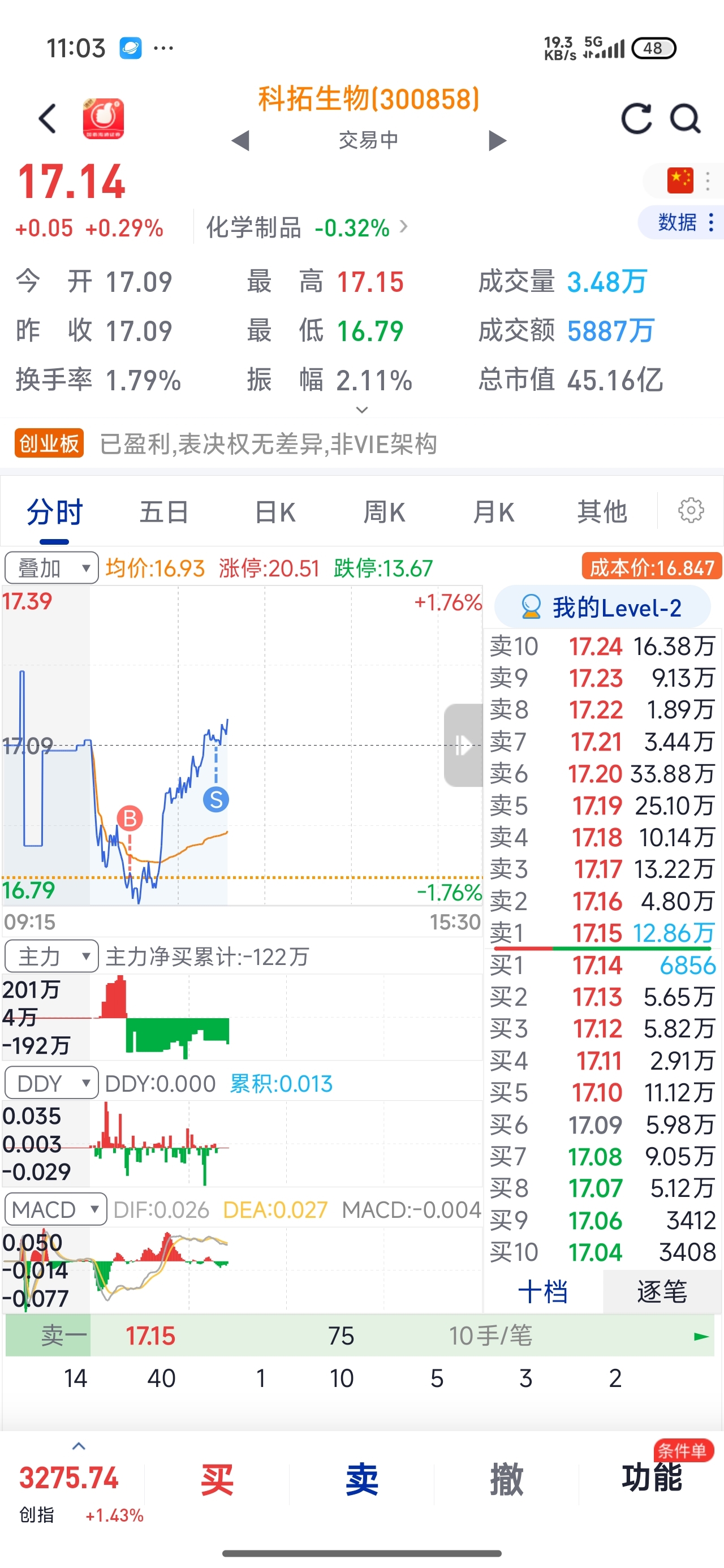 $科拓生物(SZ300858)$ 做了个T,卖早了
