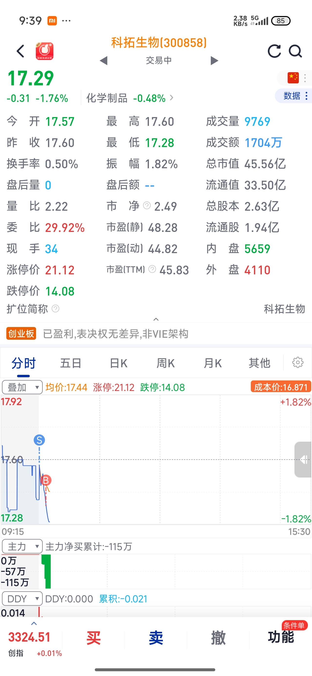 $科拓生物(SZ300858)$ 集合竞价卖了,又接回来了
