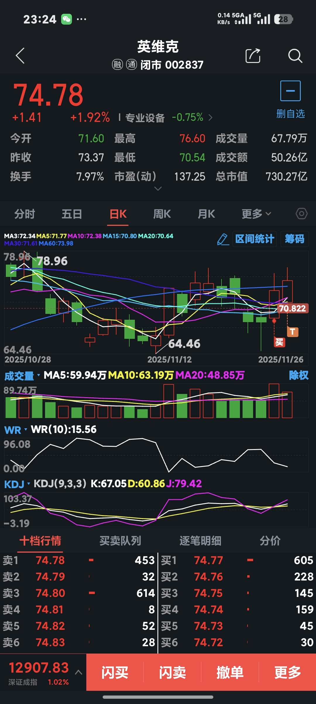 $科拓生物(SZ300858)$ 我昨天清的,买了英维克,赚了5个多点(低买高卖