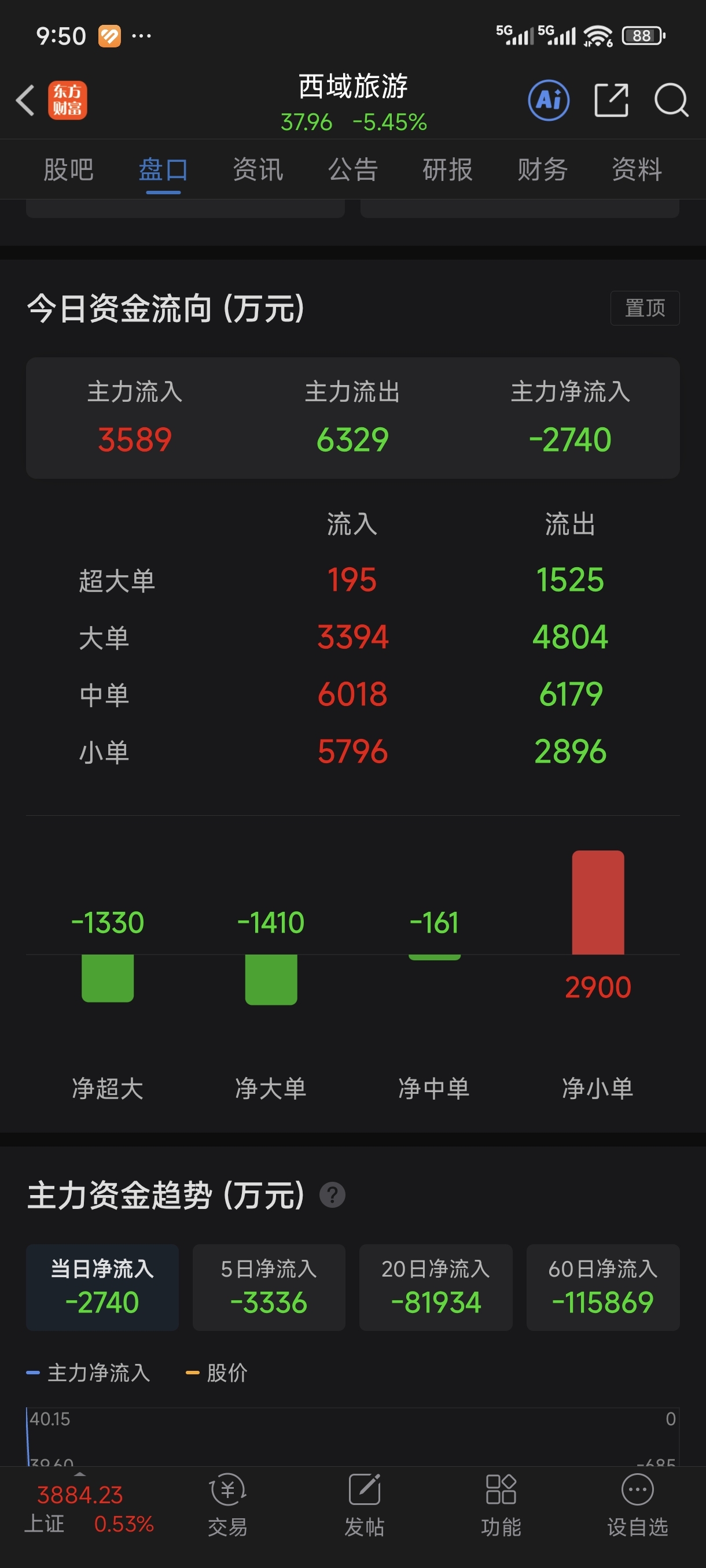 $西域旅游(SZ300859)$ 20日,主力跑了8个亿,今天开盘就跑了2000万,里面全散户