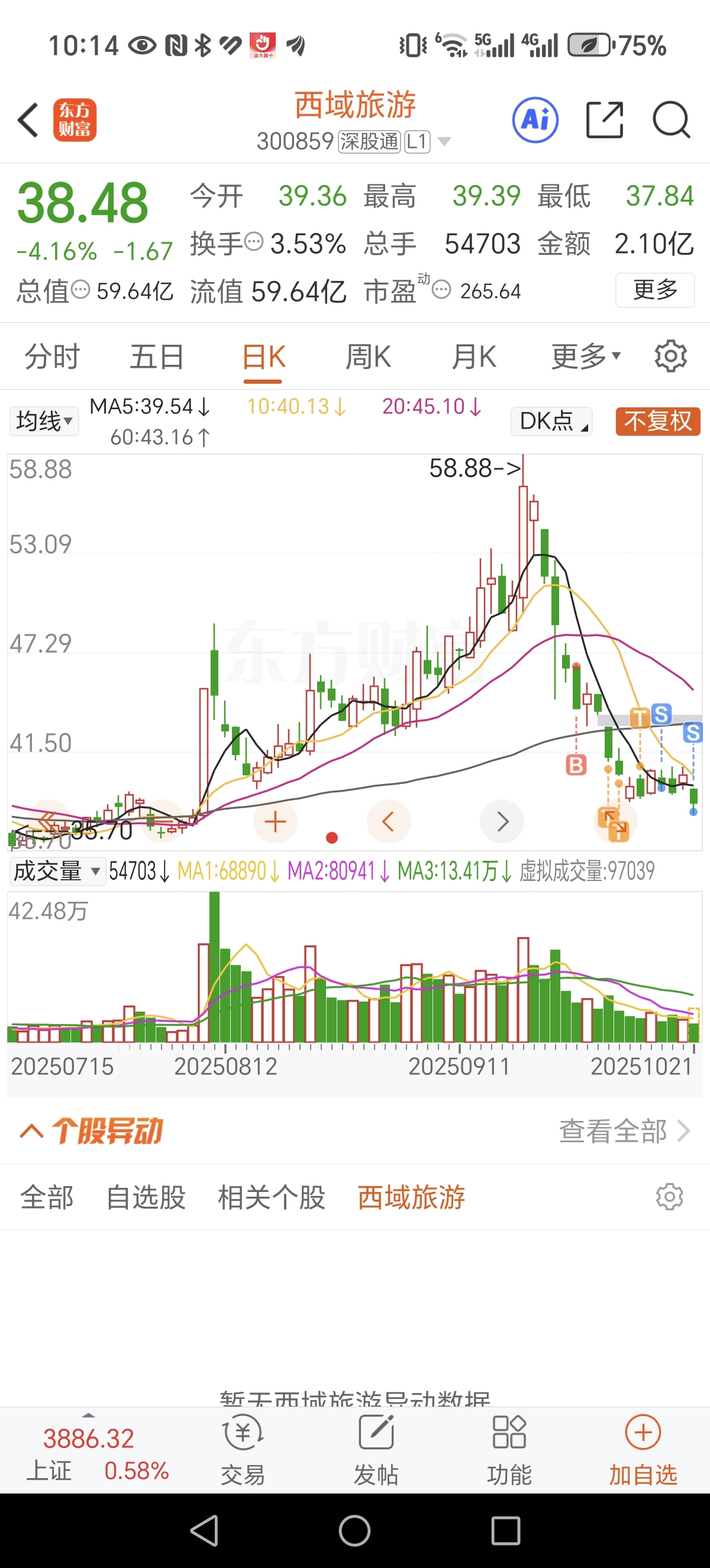 $西域旅游(SZ300859)$ 真的是今年买过最垃圾的票了,刚刚38割在最低点