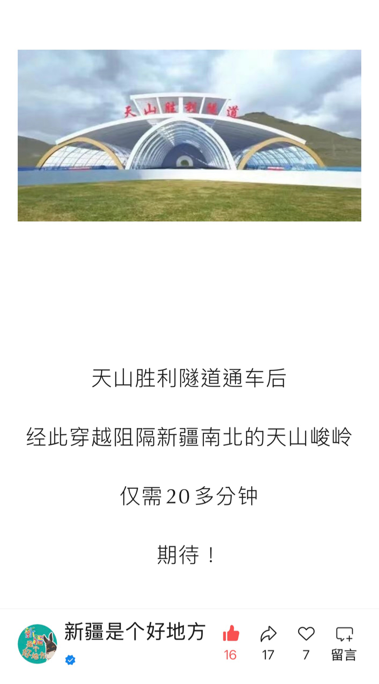 天山胜利隧道年底通车,大美新疆构建3小时旅游圈