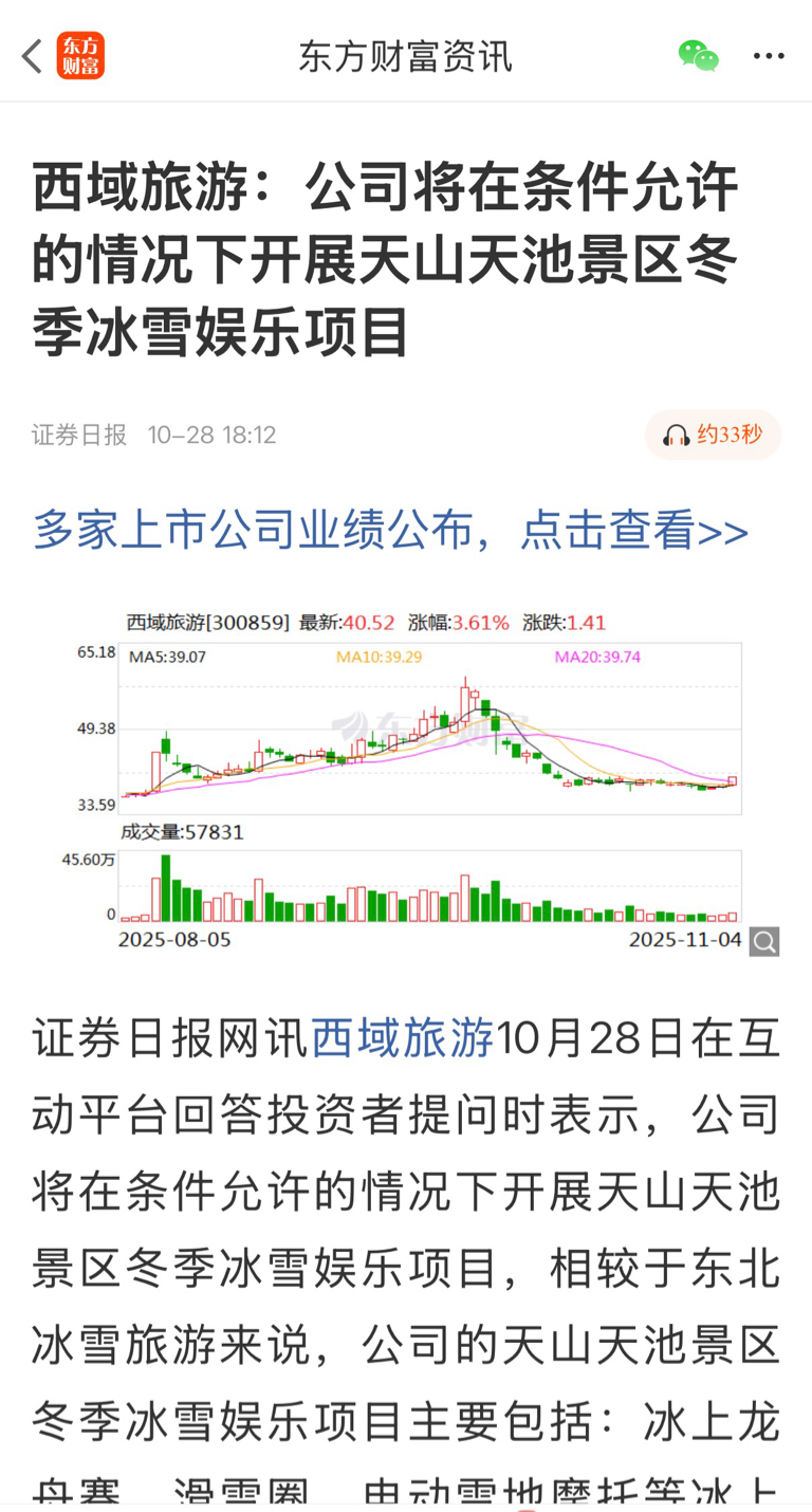 $西域旅游(SZ300859)$ 不要少看了西域旅游的冰雪
