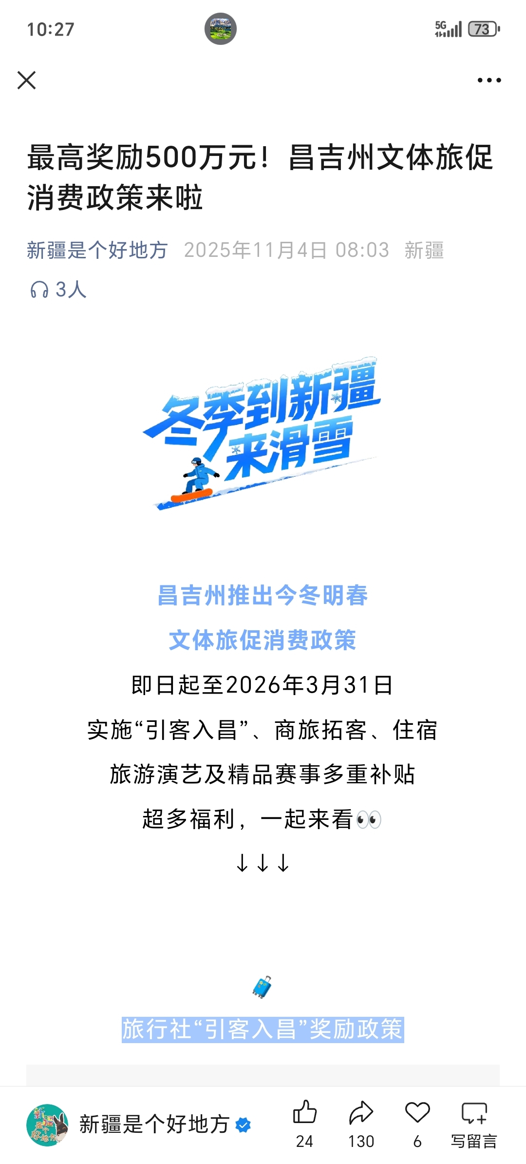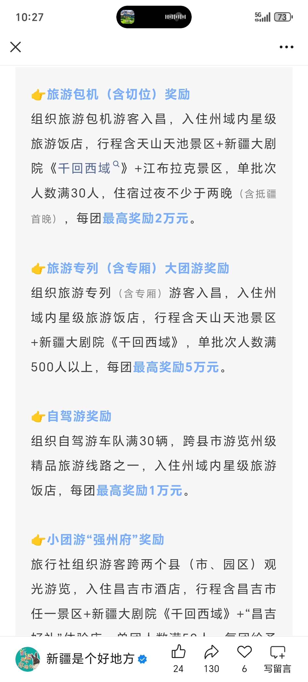 西域旅游天山天池所在地昌吉州发布旅游补贴!